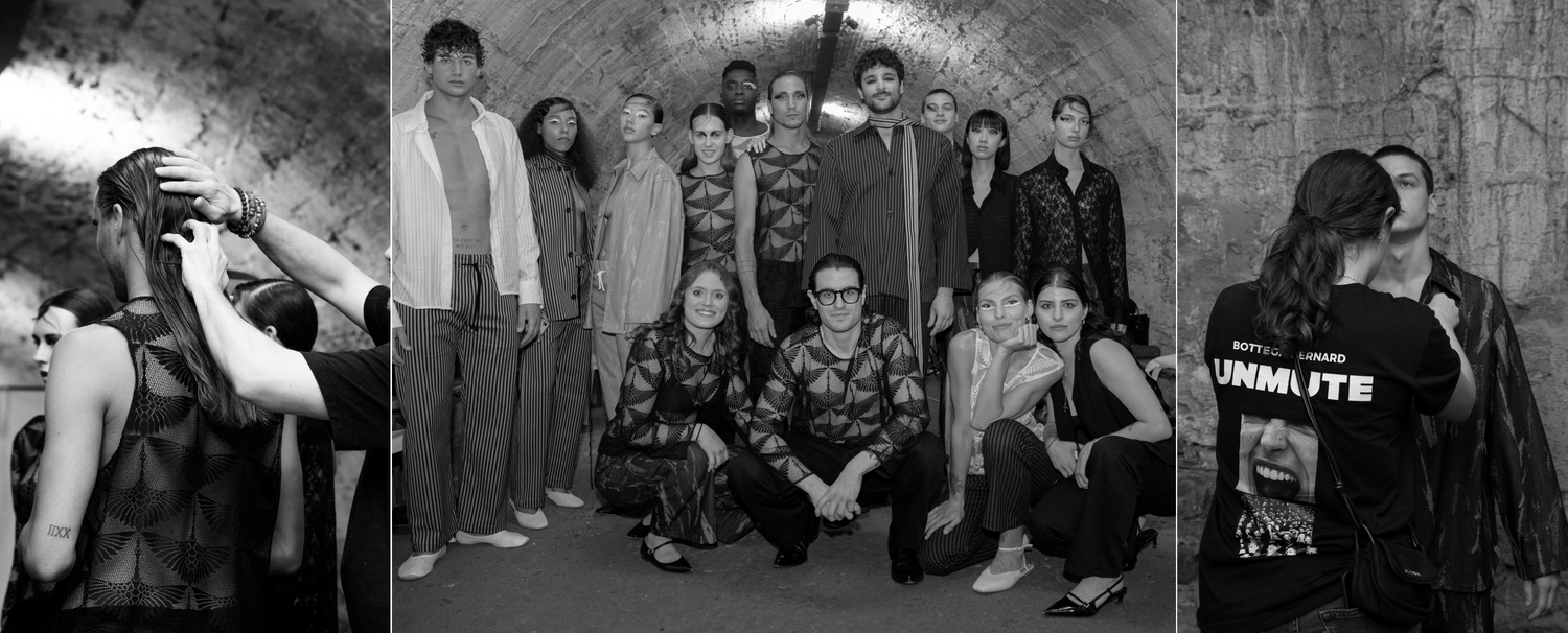 A few days later, Bottega Bernard is the protagonist of the first edition of the Lucca Fashion Weekend, presenting the Soul Canvas collection in the evocative setting of the Baluardo San Regolo. In June 2024, BB returns to Lucca catwalk for the second edition of the Lucca Fashion Weekend, presenting the Unmute collection, continuing its path of exploration of a fluid, inclusive fashion aimed at celebrating individual diversity.