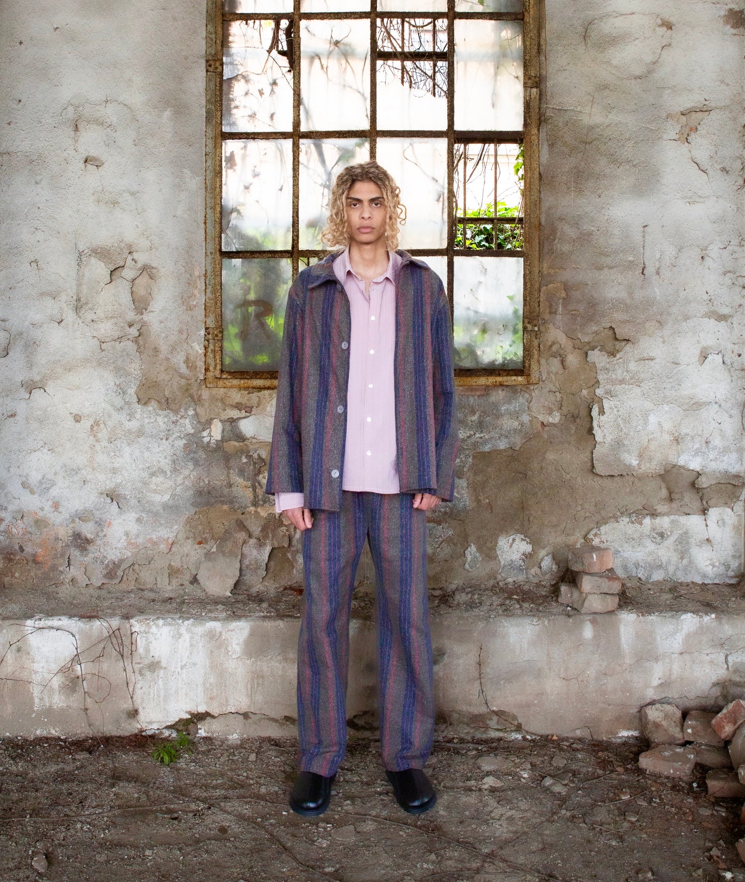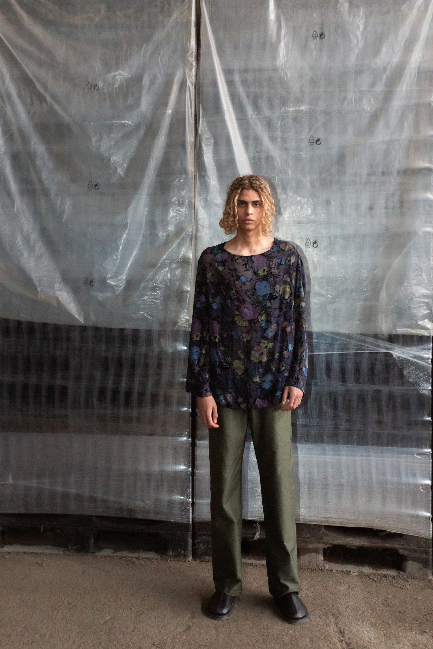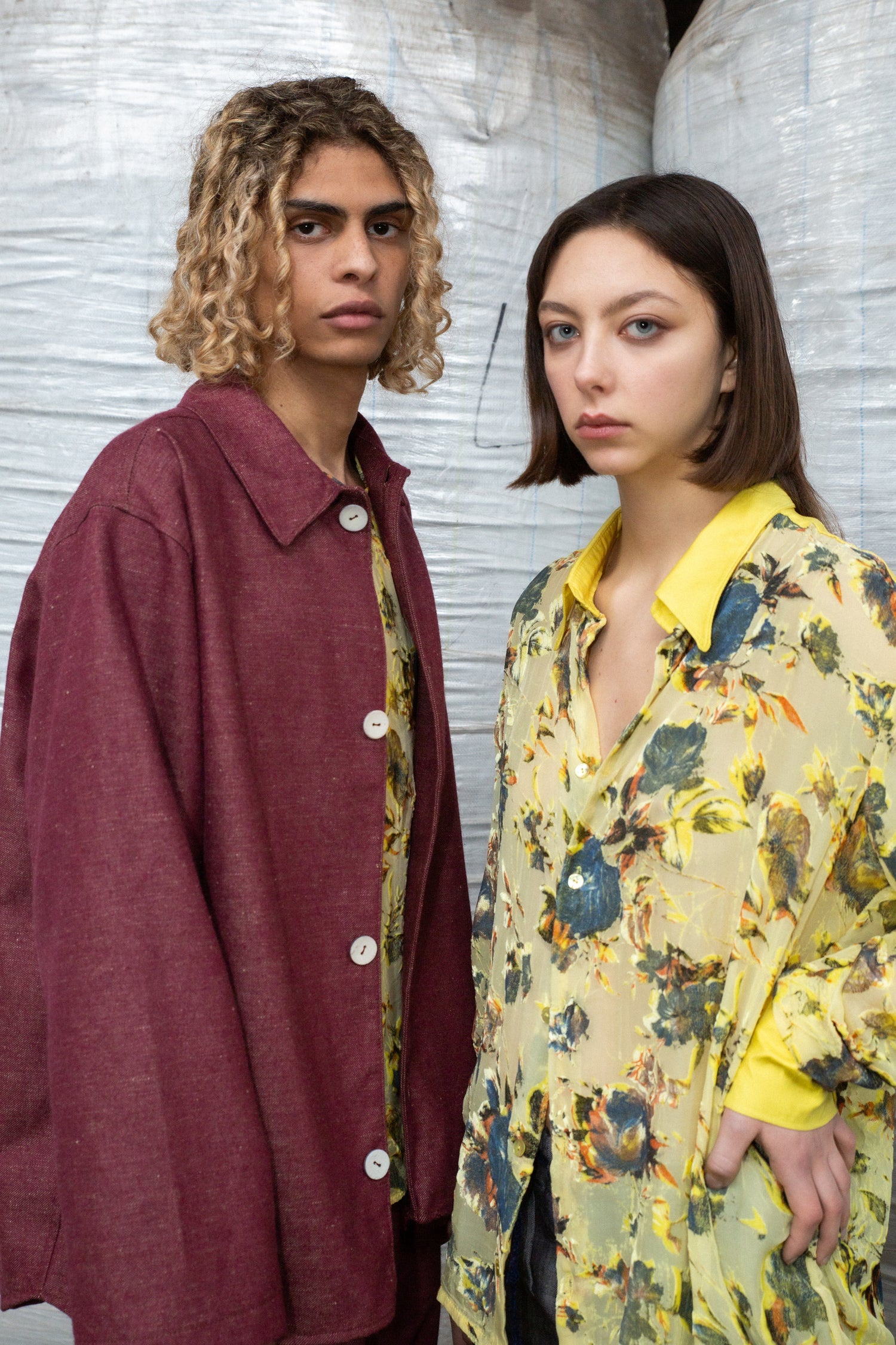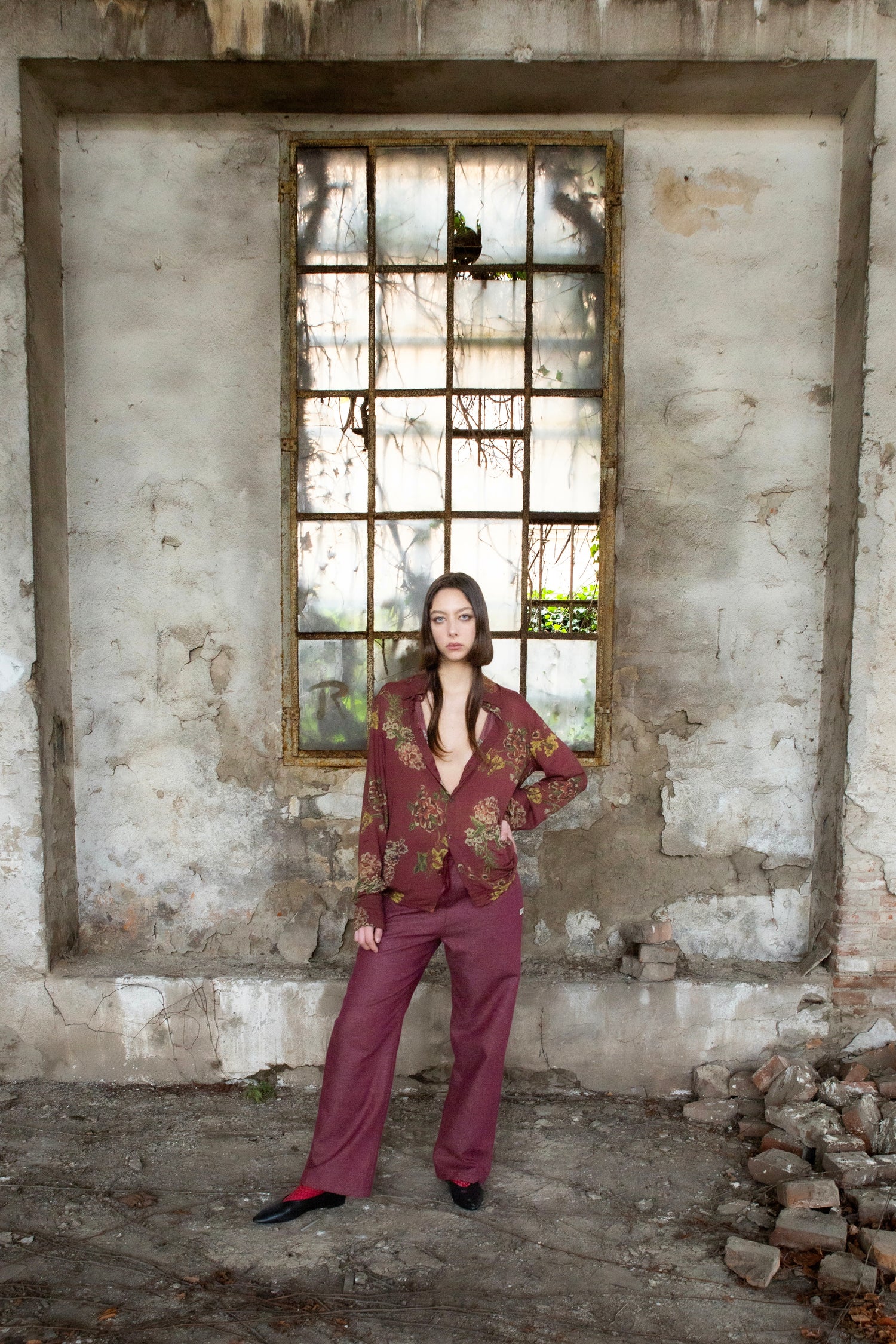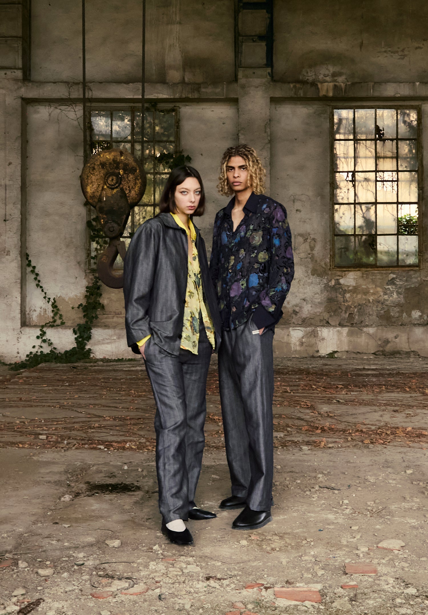 La palette cromatica della collezione, che si muove tra tonalità profonde e terrose e accenti più vibranti e floreali, riflette il contrasto tra ciò che è in profondità e ciò che emerge. I tessuti – seta, viscosa, cotone, lana, lino – creano un equilibrio tra struttura e fluidità, tra matericità e delicatezza, raccontando il dialogo costante tra radici e cambiamento. La cura sartoriale di ogni singolo pezzo, la ricerca meticolosa dei materiali e il fit rilassato danno vita a capi che si adattano al corpo senza costringerlo, accompagnandone il movimento con naturalezza e carattere.