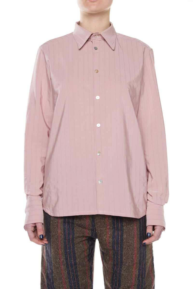 - Classic collar, sleeve with cuff and placket, front buttoning with mother-of-pearl buttons