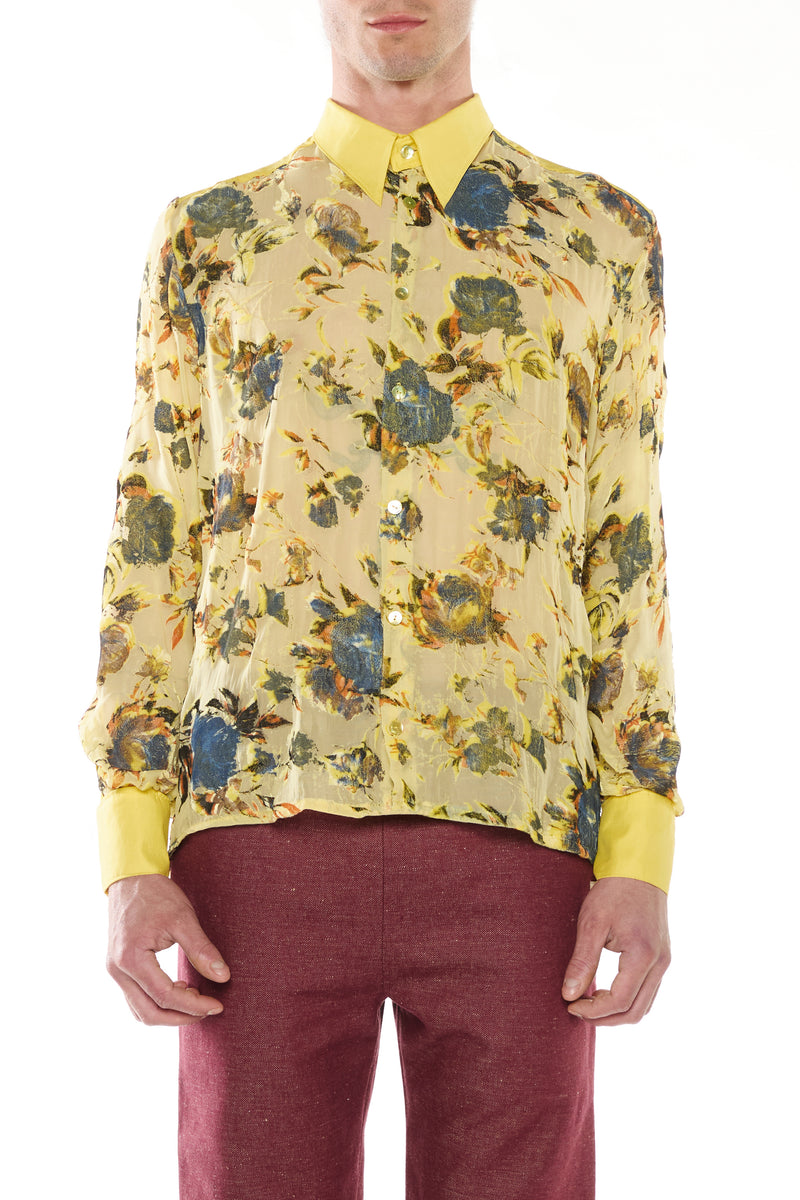 YELLOW SILK AND COTTON DEVORÉ VELVET SHIRT