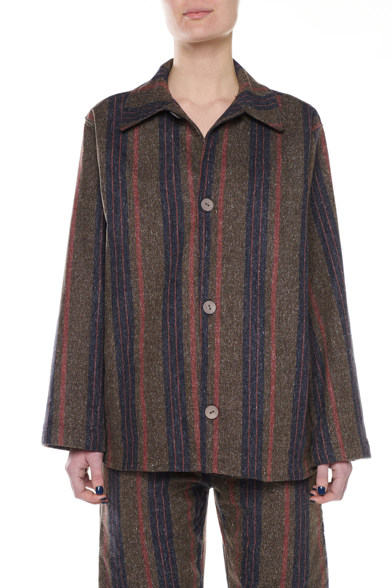 STRIPED WOOL-COTTON DENIM OVERSHIRT