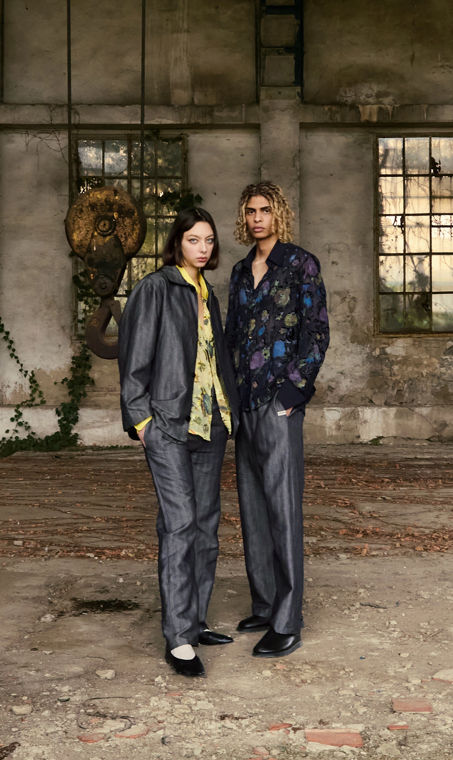 La palette cromatica della collezione, che si muove tra tonalità profonde e terrose e accenti più vibranti e floreali, riflette il contrasto tra ciò che è in profondità e ciò che emerge. I tessuti – seta, viscosa, cotone, lana, lino – creano un equilibrio tra struttura e fluidità, tra matericità e delicatezza, raccontando il dialogo costante tra radici e cambiamento. La cura sartoriale di ogni singolo pezzo, la ricerca meticolosa dei materiali e il fit rilassato danno vita a capi che si adattano al corpo senza costringerlo, accompagnandone il movimento con naturalezza e carattere.